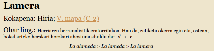 En Bermeo[1] hay varios topónimos que llevan el lexema “lam”: Lamera, Lameratxiki, Lamerapunte, Lamiaran…, todos ellos en lugares totalmente antropizados.